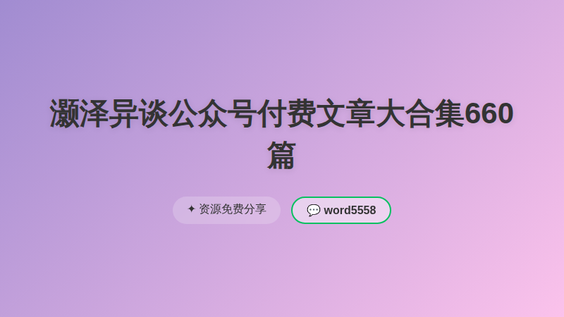灏泽异谈公众号付费文章大合集660篇 ├── 灏泽付费文章 2024年(更新中) │ ├── 10.有些事情的真相,我是真怕跟你透露的太过火2024-7-31.pdf │ ├── 9.写在天下剧变爆发前,你还来得及准备的事儿2024-7-18.pdf │ ├── 8.年中巨献:你现在的贫穷和困境,其实都有解决的思路2024-7-1.pdf │ ├── 7.他们说:这些通天的绝密, 千万不能让你掌握!2024-5-21.pdf │ ├── 6.泄露出的这些天机,我说出来都有点胆寒2024-5-1.pdf │ ├── 5.刻入骨髓的天机警告,本文向你揭露了普通人的翻身路这件通天大事2024-4-5.pdf │ ├── 4.难以想象,这篇狠辣的文章,居然能公开出来2024-3-3.pdf │ ├── 3.灏泽甲辰年生肖详解 你今年的好运,就由这篇福文为你开启2024-2-13.pdf │ ├── 2.我亲选了几种头像,能让你在新年一直兴旺! 2024-1-15.pdf │ └── 1.一文惊醒梦中人,这才是当下社会 能让你发达的真相! 2024-1-3.pdf ├── 灏泽付费文章 2023年以前 │ ├── 灏泽音频课 富人不说的秘密 │ │ ├── 【专栏用户私享】强者无形能量的构成要素.mp3 │ │ ├── 【专栏用户私享】反制...收心...行为学.....mp3 │ │ ├── 【专栏用户私享】4P的打折收钱策略.mp3 │ │ ├── 【专栏用户私享】...拉黑...聊天...收钱.mp3 │ │ ├── 【专栏用户私享】...暴力赚钱....流量........mp3 │ │ ├── 【专栏用户私享】....赚钱...不卖产品...暴利....mp3 │ │ ├── 【专栏用户私享】.....赚钱......别搞新花样......mp3 │ │ ├── 【专栏用户私享-古往今来赚钱的本质】....红楼梦...周杰伦...肖战...TFBOYS.mp3 │ │ ├── 【专栏用户私享-富人长命】...形与神俱....吸阴采阳...度百岁秘诀....mp3 │ │ ├── 【天道-人类纪】高维灵性智慧的觉醒.mp3 │ │ ├── 【机遇】......历史未来.....直播的下一波的风口…….mp3 │ │ ├── 未来三五年的机遇与形态.mp3 │ │ ├── 无法公开说的赚钱内幕与富人的隐性需求.mp3 │ │ └── 富人不传生意经-市场营销学总纲.mp3 │ ├── 灏泽公众号文集2021年以前 │ │ ├── 灏泽异谈公众号合集电子书.pdf │ │ ├── 灏泽文集 下册.pdf │ │ └── 灏泽文集 上册.pdf │ ├── 灏泽付费文章2021-2022年 │ │ ├── 22-疫情迎来大结局!终于,该聊聊让你明年招财聚富的新战略了.pdf │ │ ├── 21-私藏心术: 我绝不允许低谷期的你,错过这篇关于翻身转运的秘籍11.25.pdf │ │ ├── 20-解密关键:那个你触及不到的层次,又有哪些你必须知道的事?11.15.pdf │ │ ├── 19-家国与人生: 跟你详细聊聊,万物背后所藏的天道级大智慧.pdf │ │ ├── 18-修炼与复盘: 让咱俩认真聊聊,人这辈子到底是怎么一步步爬上去的?.pdf │ │ ├── 17-灏泽9.1.pdf │ │ ├── 16-远大前程.pdf │ │ ├── 15-至尊雄心:身为不甘平庸的男人,这些顶级赢家思维你怎能不懂.pdf │ │ ├── 14-野心优雅: 富贵喜乐的女人,拥有哪些你不知道的强者思维?.pdf │ │ ├── 13-波澜壮阔的未来三年,那些会影响你一辈子的决策(深度建议).pdf │ │ ├── 12-繁华之下:想和你详细聊聊,接下去的日子怎么闷声发大财(建议收藏).pdf │ │ ├── 11-只有看透 “财运” 的底层逻辑,你的身价与财富才会开挂般暴增.pdf │ │ ├── 10-读懂了本文,你的2022就彻底稳了.pdf │ │ ├── 09-年终臻礼:向今年道别的最佳方式,就是读透这篇关于你未来的雄文.pdf │ │ ├── 08-国运起,寒冬退:千载难逢的壬寅年,你该怎么做好全布局.pdf │ │ ├── 07-不要辜负这个时代,细述红蓝史诗对话后,让我们升阶得富的新契机.pdf │ │ ├── 06-用残酷的真实说明为什么普通离财富这么远.pdf │ │ ├── 05-十阶众生相 : 一文说透本时代的各个阶层.pdf │ │ ├── 04-玲珑大局:为什么未来三年,是普通人翻盘升阶的最好时机.pdf │ │ ├── 02-天地江湖:读懂了本文,就读懂了大半个天下.pdf │ │ └── 01-购宅置业的核心逻辑,各大城市发展分析.pdf │ ├── 致富心态.pdf │ ├── 灏泽异谈 知识星球144篇付费文章 共1116页.pdf │ ├── 灏泽异谈 免费文章合集 共2081页.pdf │ ├── 灏泽精选文集 (中).pdf │ ├── 灏泽精选文集 (续集).pdf │ ├── 灏泽精选文集 (下).pdf ... 省略 521 行 ... │ ├── 0423灏泽异谈更新原始牌一般但靠自己过的好的女性.pdf │ ├── 0422灏泽异谈更新苏州买房.pdf │ ├── 0420灏泽异谈更新 宝安区房产购置.pdf │ ├── 0416灏泽异谈更新深圳买房选区域的优先级.pdf │ ├── 0414灏泽异谈更新身边未婚生育的美女博士.pdf │ ├── 0412灏泽异谈更新 喜欢高知男性却始终遇人不淑.pdf │ ├── 0410灏泽异谈更新 楼市人才房背后的梦想和脆弱.pdf │ ├── 0409灏泽异谈更新 领证前认清男生的真面目.pdf │ ├── 0408灏泽异谈更新 买房要关注到投资属性.pdf │ ├── 0407灏泽更新 如何与不同类型的领导相处.pdf │ ├── 0406灏泽异谈更新 拔了想请领导吃饭,还要邀请哪些人.pdf │ ├── 0404灏泽异谈更新 普通二线城市婚恋情况.pdf │ ├── 0403灏泽异谈更新 择偶问题.pdf │ └── 0401灏泽异谈更新 低年龄高学历,没有现金流女孩,婚恋现状.pdf ├── 3月 │ ├── 天庭的大趋势,定了!.pdf │ ├── 0330灏泽异谈更新 90年女,相亲如何破局.pdf │ ├── 0329灏泽异谈更新 辞