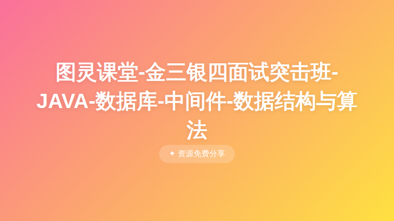 图灵课堂-金三银四面试突击班-JAVA-数据库-中间件-数据结构与算法
