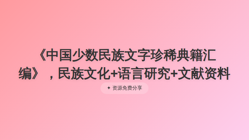 《中国少数民族文字珍稀典籍汇编》,民族文化+语言研究+文献资料