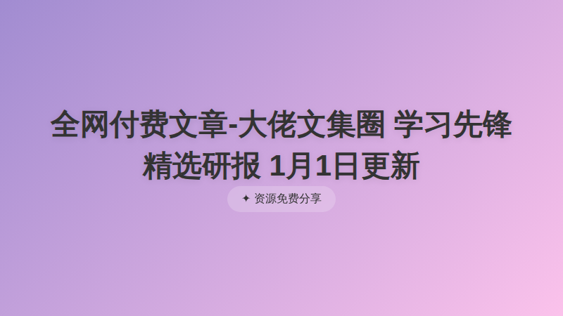 全网付费文章-大佬文集圈 学习先锋 精选研报 1月1日更新