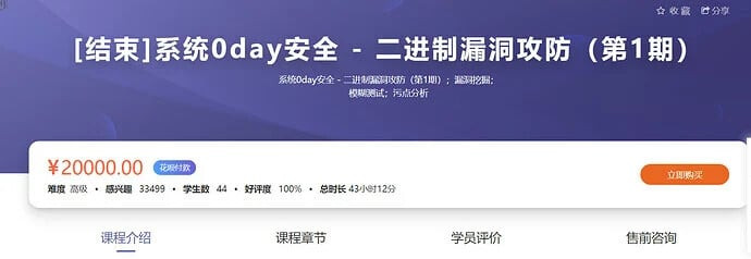 看雪-系统0day安全二进制漏洞攻防第一期 价值¥20000.00