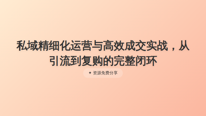 私域精细化运营与高效成交实战,从引流到复购的完整闭环