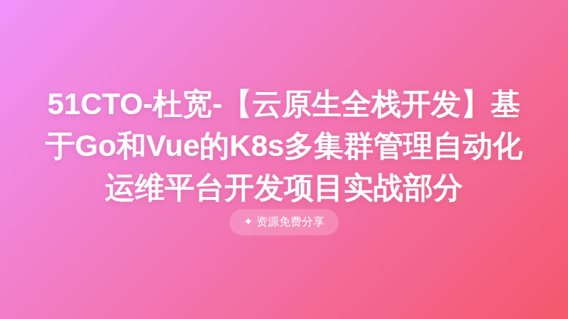 51CTO-杜宽-【云原生全栈开发】基于Go和Vue的K8s多集群管理自动化运维平台开发项目实战部分 ├── 第01章【云原生全栈开发】课程介绍(1小时17分钟5节) │ ├── 01-01、云原生全栈开发课程内容介绍.mp4 │ ├── 01-02、云原生全栈开发课程大纲详解【1.3倍速】.mp4 │ ├── 01-03、云原生全栈开发课程项目演示【1.3倍速】.mp4 │ ├── 01-04、为什么要学这门课?.mp4 │ └── 01-05、遇到问题如何解决.mp4 ├── 第02章【开篇】K8s多集群管理平台项目设计与准备(1小时6分钟10节) │ ├── 02-01、如何从零开始做一个完整项目.mp4 │ ├── 02-02、前后端分离先写前端还是先写后端?.mp4 │ ├── 02-03、前后端分离系统架构设计.mp4 │ ├── 02-04、前后端分离域名发布路由设计.mp4 │ ├── 02-05、前后端分离内部路由设计.mp4 │ ├── 02-06、前后端分离数据交互模型设计.mp4 │ ├── 02-07、集群元数据存储云原生设计.mp4 │ ├── 02-08、集群管理工具Client-go介绍和版本演变.mp4 │ ├── 02-09、集群管理工具Client-go客户端分类及依赖关系.mp4 │ └── 02-10、集群管理工具Client-go集群内外使用详解.mp4 ├── 第03章【后端】集群管理工具Client-go必知必会(1小时46分钟8节) │ ├── 03-01、使用脚手架初始化后端项目工程.mp4 │ ├── 03-02、Client-go基本使用.mp4 │ ├── 03-03、Client-go查询列表功能使用.mp4 │ ├── 03-04、Client-go查询资源详情功能使用.mp4 │ ├── 03-05、Client-go更新资源功能使用 .mp4 │ ├── 03-06、Client-go删除资源功能使用.mp4 │ ├── 03-07、Client-go创建资源功能使用.mp4 │ └── 03-08、Client-go使用Json串创建资源.mp4 ├── 第04章 【后端】K8s多集群管理设计与实现 (2小时39分钟 12节) │ ├── 04-01、实现Init控制器管理程序数据初始化.mp4 │ ├── 04-02、实现程序元数据自动初始化.mp4 │ ├── 04-03、实现集群管理的路由配置.mp4 │ ├── 04-04、实现添加集群的功能.mp4 │ ├── 04-05、实现集群状态的检查.mp4 │ ├── 04-06、实现使用结构体直接保存集群信息.mp4 │ ├── 04-07、添加集群功能测试.mp4 │ ├── 04-08、实现集群删除功能.mp4 │ ├── 04-09、实现集群列表查询功能.mp4 │ ├── 04-10、优化集群列表数据返回结果 .mp4 │ ├── 04-11、实现集群配置更新功能.mp4 │ └── 04-12、实现获取集群配置详情.mp4 ├── 第05章 【后端】K8s多集群命令空间管理设计与实现 (1小时34分钟 8节) │ ├── 05-01、实现Namespace管理的路由配置.mp4 │ ├── 05-02、实现多集群kubeconfig的管理.mp4 │ ├── 05-03、实现Namespace的创建功能 .mp4 │ ├── 05-04、优化资源管理初始化代码逻辑.mp4 │ ├── 05-05、实现Namespace的删除功能和删除保护.mp4 │ ├── 05-06、实现Namespace的列表查询功能.mp4 │ ├── 05-07、实现Namespace的详情查询功能.mp4 │ └── 05-08、实现Namespace的配置更新功能.mp4 ├── 第06章 【后端】K8s多集群Pod管理设计与实现 (1小时30分钟 10节) │ ├── 06-01、实现Pod管理的路由和控制器.mp4 │ ├── 06-02、实现创建Pod的功能.mp4 │ ├── 06-03、实现删除单个Pod的功能.mp4 │ ├── 06-04、实现删除多个Pod的功能.mp4 │ ├── 06-05、实现查询Pod列表的功能.mp4 │ ├── 06-06、实现获取Pod详情的功能.mp4 │ ├── 06-07、代码优化-改为接口式编程.mp4 │ ├── 06-08、代码优化-统一资源创建的接口.mp4 │ ├── 06-09、代码优化-封装资源管理的接口方法.mp4 │ └── 06-10、代码优化-使用接口实现资源管理.mp4 ... 省略 261 行 ... │ ├── 24-16、实现自动添加Service的前端判断.mp4 │ ├── 24-17、实现后端自动创建资源的Service.mp4 │ ├── 24-18、实现其它控制器自动添加Service的功能.mp4 │ ├── 24-19、实现通过Yaml数据创建或更新资源.mp4 │ ├── 24-20、通过Yaml创建资源原理讲解DynamicClien.mp4 │ ├── 24-21、实现通过资源详情的弹窗更新功能.mp4 │ ├── 24-22、通过Yaml创建资源方法修改.mp4 │ ├── 24-23、实现Pod批量操作的多选和删除选择.mp4 │ └── 24-24、实现Pod删除和强制删除的逻辑.mp4 ├── 第25章 【特性功能开发】查看日志和执行命令 (3小时58分钟 23节) │ ├── 25-01、什么是WebSocket.mp4 │ ├── 25-02、前端和后端如何创建WebSocket链接.mp4 │ ├── 25-03、WebSocket初体验:后端实现.mp4 │ ├── 25-04、WebSocket初体验:前端实现与测试.mp4 │ ├── 25-05、实现查看日志:创建后端日志流.mp4 │ ├── 25-06、实现查看日志:WebSocket回传日志数据.mp4 │ ├── 25-07、实现查看日志:获取Pod日志测试.mp4 │ ├── 25-08、实现查看日志:前端查看日志布局.mp4 │ ├── 25-09、实现查看日志:前端实时展示Pod日志.mp4 │ ├── 25-10、实现多容器日志查看及容器切换.mp4 │ ├── 25-11、实现执行命令:创建后端命令执行器.mp4 │ ├── 25-12、实现执行命令:实现Stream相关接口.mp4 │ ├── 25-13、实现执行命令:接收前端执行消息数据.mp4 │ ├── 25-14、实现执行命令:回传执行结果和调整窗口大小.mp4 │ ├── 25-15、实现执行命令:定义后端执行命令的路由.mp4 │ ├── 25-16、实现执行命令:xtermjs与前端弹窗实现.mp4 │ ├── 25-17、实现执行命令:xtermjs初始化terminal.mp4 │ ├── 25-18、实现执行命令:xtermjs自动处理we