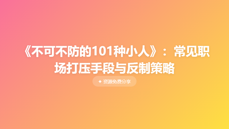 《不可不防的101种小人》:常见职场打压手段与反制策略 └── 《不可不防的101种小人》:常见职场打压手段与反制策略.pdf
