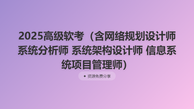 2025高级软考学习资料 ├── 2025高级软考--官方教材基础精讲 │ ├── 课件 │ │ ├── _001-高项-导学课-24年5月课程-一本通V1.1(23年12月10日直播课件).pdf │ │ ├── _002-高项-第1章 信息化发展-01-24年5月课程-一本通V1.1(23年12月18日直播课件).pdf │ │ ├── _003-高项-第1章 信息化发展-02-24年5月课程-一本通V1.1(23年12月22日直播课件) .pdf │ │ ├── _004-高项-第2章 信息技术发展-01-24年5月课程-一本通V1.1(23年12月25日直播).pdf │ │ ├── _005-高项-第2章 信息技术发展-02-24年5月课程-一本通V1.1(24年1月5日直播)_打印版.pdf │ │ ├── _006-高项-第3章 第3章 信息系统治理-24年5月课程-一本通V1.1(24年1月8日直播)_打印版.pdf │ │ ├── _007-高项-第4章 信息系统管理-24年5月课程-一本通V1.1(24年1月12直播).pdf │ │ ├── _008-高项-第5章 信息系统工程-01-24年5月课程-一本通V1.1(24年1月15直播)-打印版.pdf │ │ ├── _009-高项-第5章 信息系统工程-02-24年5月课程-一本通V1.1(24年1月19直播).pdf │ │ ├── _010-高项-第6章 项目管理概论-24年5月课程-一本通V1.1(24年1月22直播)_打印版(可搜索).pdf │ │ ├── _011-高项-第7章 项目立项管理-24年5月课程-一本通V1.1(24年1月24直播)_打印版(可搜索).pdf │ │ ├── _012-高项-第8章 项目整合管理-01-24年5月课程-一本通V1.1(24年1月26直播)_打印版(可搜索).pdf │ │ ├── _013-高项-第8章 项目整合管理-02-24年5月课程-一本通V1.1(24年1月29直播)_打印版-可搜索.pdf │ │ └── _014-高项-第8章 项目整合管理-03-24年5月课程-一本通V1.1(24年2月2直播)_打印版-可搜索.pdf │ ├── 001-高项-导学课-24年5月课程-23年12月10日直播回放.mp4 │ ├── 002-高项-第1章 信息化发展-01(24年5月-23年12月18日直播回放).mp4 │ ├── 003-高项-第1章 信息化发展-02(24年5月-23年12月22日直播回放).mp4 │ ├── 004-高项-第2章 信息技术发展-01(24年5月-23年12月25日直播回放).mp4 │ ├── 005-高项-会议版-第2章 信息技术发展-02(24年5月-24年1=月5日直播回放).mp4 │ ├── 006-高项-会议版-第3章 信息系统治理-(24年5月-24年1月10日直播回放).mp4 │ ├── 007-高项 第4章 信息系统管理(24年5月课程 24年1月12日直播回放).mp4 │ ├── 008-高项-第5章 信息系统工程-01(24年5月课程 24年1月15日直播回放).mp4 │ ├── 009-高项-第5章 信息系统工程-02(24年5月课程 24年1月19日直播回放).mp4 │ ├── 010-高项 第6章 项目管理概论(24年5月课程 1月22日直播回放).mp4 │ ├── 011-高项 第7章 项目立项管理(24年5月课程 24年1月24日直播回放).mp4 │ ├── 012-高项 第8章 项目整合管理-01(24年5月课程 24年1月26日直播回放).mp4 │ ├── 013-高项 第8章 项目整合管理-02(24年5月课程 24年1月29日直播回放).mp4 │ └── 014-高项 第8章 项目整合管理-03(24年5月课程 24年2月2日直播回放).mp4 ├── 2025高级软考--网络规划设计师 │ ├── 2009-2021年真题及答案解析 │ │ ├── 2009-2019真题答案分离版 │ │ │ └── ... │ │ ├── 2021年网规真题答案解析视频 │ │ │ └── ... │ │ ├── 2009年下半年网络规划设计师上午+下午+答案解析- .pdf │ │ ├── 2010年上半年网络规划设计师上午+下午+答案解析-.pdf │ │ ├── 2010年下半年网络规划设计师上午+下午+答案解析-.pdf │ │ ├── 2011年下半年网络规划设计师上午+下午+答案解析-.pdf │ │ ├── 2012年下半年网络规划设计师上午+下午+答案解析-.pdf │ │ ├── 2013年下半年网络规划设计师上午+下午+答案解析-.pdf │ │ ├── 2014年下半年网络规划设计师上午+下午+答案解析-.pdf │ │ ├── 2015年下半年网络规划设计师上午+下午+答案解析- .pdf │ │ ├── 2016年下半年网络规划设计师上午+下午+答案解析-.pdf │ │ ├── 2017年下半年网络规划设计师上午+下午+答案解析-.pdf │ │ ├── 2018年下半年网络规划设计师上午+下午+答案解析-.pdf │ │ ├── 2019年下半年网络规划设计师上午真题及答案解析-.pdf │ │ ├── 2019年下半年网络规划设计师下午真题及答案解析-.pdf │ │ ├── 2020年因疫情未考-.txt │ │ ├── 2021年下半年网络规划设计师上午真题及答案解析-.doc │ │ ├── 2021年下半年网络规划设计师下午真题及答案解析-.doc │ │ └── 网络规划设计师模拟题及答案解析-综合知识-.pdf │ ├── 论文模板和范文200+篇 │ │ ├── 01-50套精选论文范文pdf │ │ │ └── ... │ │ ├── 02-160篇论文模板 │ │ │ └── ... │ │ └── 03-50篇精选论文范文word ... 省略 136 行 ... │ │ ├── 12. 系统可靠性分析与设计 │ │ │ └── ... │ │ ├── 13. 项目管理 │ │ │ └── ... │ │ ├── 14. 案例特训-技巧篇 │ │ │ └── ... │ │ ├── 15. 案例特训-软件工程篇 │ │ │ └── ... │ │ ├── 16. 案例特训-数据库设计篇 │ │ │ └── ... │ │ ├── 17. 案例特训-架构设计篇 │ │ │ └── ... │ │ ├── 18. 案例特训-其它篇 │ │ │ └── ... │ │ └── 19. 论文写作 │ │ └── ... │ └── 希赛-系统架构设计师 │ ├── 01-2009-2022年系统架构设计师历年真题及答案解析 │ │ └── ... │ ├── 02-答题卡、通过率和考试心得 │ │ └── ... │ ├── 03-系统架构师论文范