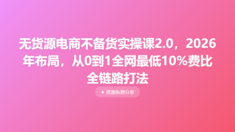无货源电商不备货实操课2.0,2026年布局,从0到1全网最低10%费比全链路打法