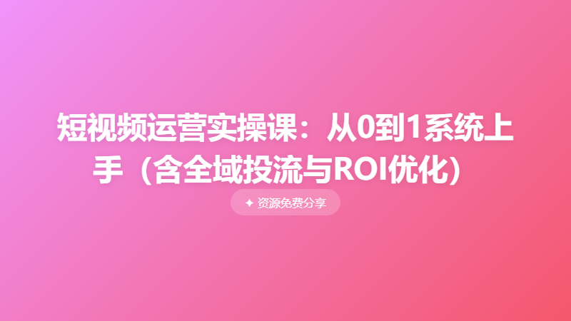 短视频运营实操课,选品、剪辑、测品、投流,从0到1轻松玩转短视频 └── 短视频运营实操课,选品、剪辑、测品、投流,从0到1轻松玩转短视频.zip