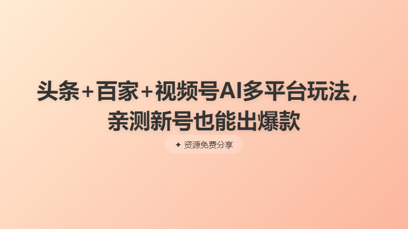 头条+百家+视频号AI多平台玩法,亲测新号也能出爆款 └── 头条+百家+视频号(AI玩法),单号每天收入几百元,新号亲测流量猛!.mp4