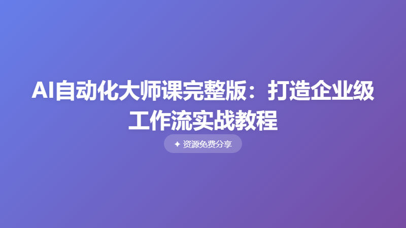 AI自动化大师课:从零构建企业级工作流 ├── 1.工作流基础知识 │ ├── 1.AI自动化的分级与应用.mp4 │ ├── 2.为什么选择N8N:各大工作流平台对比分析.mp4 │ └── 3.AI工作流全景图:深入理解N8N核心原理.mp4 ├── 2.安装N8N │ ├── 1.本地部署N8N及避坑指南.docx │ ├── 1.本地部署N8N及避坑指南.mp4 │ ├── 2.如何升级N8N版本及还原工作流数据 .mp4 │ ├── 2.如何升级N8N版本及还原工作流数据.docx │ ├── 3.云服务器安装、升级N8N及相关安全防护.docx │ ├── 3.云服务器安装、升级N8N及相关安全防护.mp4 │ └── file_1.DS_Store ├── 3.快速上手N8N │ ├── 1.熟悉N8N操作界面及功能入口.mp4 │ ├── 2.告别语言障碍:N8N中文界面配置指南.mp4 │ ├── 3.N8N核心节点功能详解.mp4 │ ├── 4.如何匹配最合适的节点:将需求转换为N8N节点.mp4 │ ├── 5.N8N入门必修:常用变量功能 .mp4 │ ├── 6.N8N授权复杂节点实操.mp4 │ ├── 7.N8N工作流必备工具:解锁企业级工作流 .mp4 │ ├── 8.外网直连本地n8n工作流:n8n内网穿透 .mp4 │ ├── file_1.DS_Store │ └── N8N核心节点详解.zip ├── 4.N8N工作流实战 │ ├── 1.构建你的第一个N8N工作流.mp4 │ ├── 2. AI节点详解与实战:构建智能AI Agent工作流 .mp4 │ ├── 3.强化AI Agent工作流:安装及配置Memory数据库.mp4 │ ├── 4.构建知识库问答工作流:文档向量存储及RAG检索 .mp4 │ ├── 5.Code节点实战:快速将需求转成代码,解锁万能节点.mp4 │ ├── 6.安装、应用及探索N8N社区节点,提升工作流能力 .docx │ ├── 6.安装、应用及探索N8N社区节点,提升工作流能力.mp4 │ ├── file_1.DS_Store │ └── json工作流.zip ├── 5.N8N企业级工作流开发 │ ├── 1.N8N工作流实战:自动采集公众号及任意网站资讯 AI爬虫工作流.mp4 │ ├── 2.N8N工作流实战:全自动日报工作流,含:信息收集、加工、筛选、生成日报及分发社交软件 [365exe.com].mp4 │ ├── 3.N8N工作流实战:自动生成短视频、一键成片,告别剪辑烦恼.mp4 │ ├── 4. N8N工作流实战:自动总结微信群聊摘要,支持多群总结、无封号风险.mp4 │ ├── 5.N8N工作流实战:打造抖音运营神器,免费监控对标账号数据、下载无水印视频、提取文案等 [365exe.com].mp4 │ └── 实战工作流.zip └── 6.自媒体工作流开发 ├── 低粉爆款视频采集.mp4 ├── 工作流.zip ├── 一键搞定小红书创作全流程:AI工作流自动生成文案、封面和短视频 .mp4 └── 一键“复刻”爆款短视频.mp4