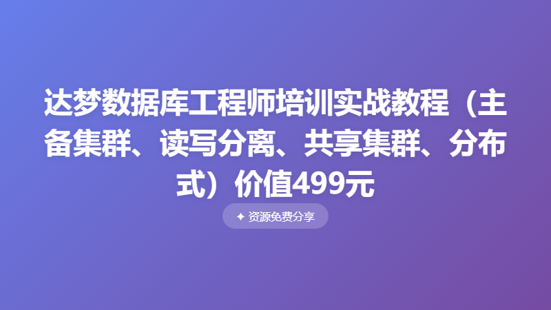 达梦数据库工程师培训实战教程(主备集群、读写分离、共享集群、分布式)价值499元