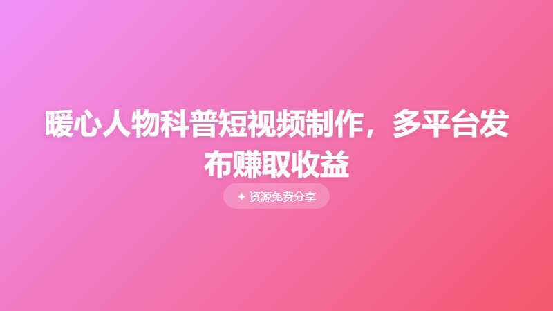 暖心人物科普短视频制作,多平台发布赚取收益