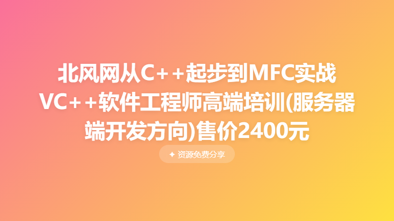北风网从C++起步到MFC实战VC++软件工程师高端培训(服务器端开发方向)售价2400元