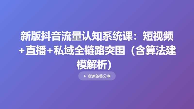 抖音流量认知课,短视频+直播+私域,认知提升,闪电开悟 └── 抖音流量认知课,短视频+直播+私域,认知提升,闪电开悟.zip