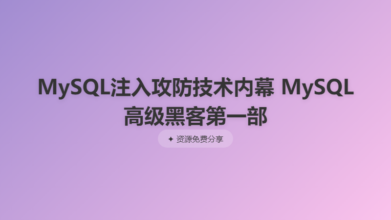 MySQL高级黑客 MySQL注入攻防技术内幕-第一部分视频课程(1) ├── 1 SQL注入课程简介与SQL注入攻击原理.mp4 ├── 2 MySQL SQL基础DDL语句.mp4 ├── 3 DML语言与INSERT注入逻辑应用.mp4 ├── 4 DELETE与注入逻辑.mp4 ├── 5 UPDATE与注入逻辑.mp4 ├── 6 SELECT基本使用 .mp4 ├── 7 SELECT 与常用注入逻辑应用 .mp4 ├── 8 记录联合与注入逻辑.mp4 └── 9 DCL语言与提权逻辑.mp4