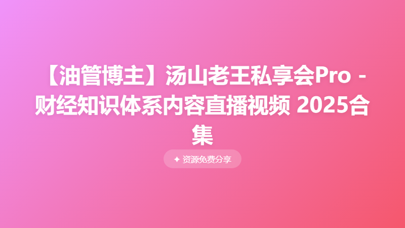 【油管博主】汤山老王私享会Pro - 财经知识体系内容直播视频 2025合集
