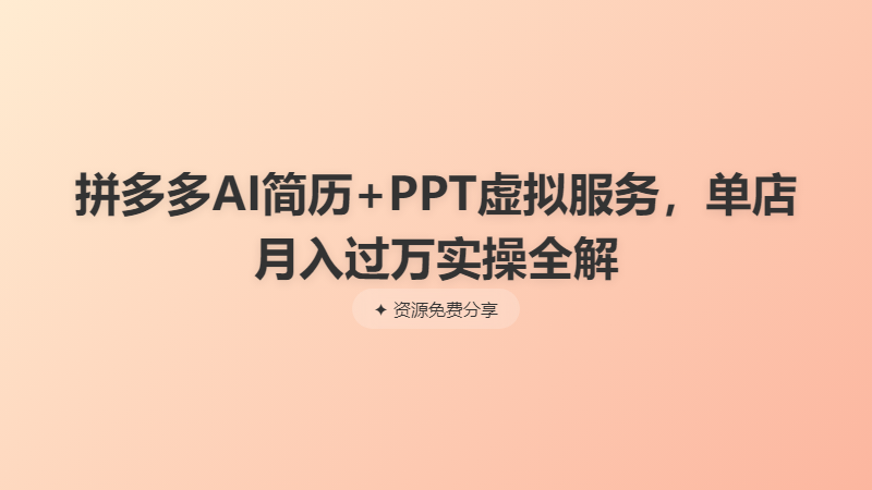 拼多多AI简历+PPT虚拟服务,单店月入过万实操全解