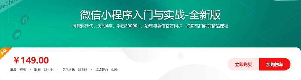 这是一门蜚声内外的高口碑微信小程序开发课程,也是领先上线的微信小程序开发课程。小程序早期开发者多数都是从这门课程走出去的,经过4年迭代,这里,从一个课程,发展成了一个用户活跃度高、用户技术水平高、用户素质高的“小程序开发社区”。