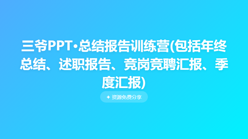 总结报告特训营:用PPT演说赢得升职加薪 帮助职场人提升汇报能力,包括年终总结、述职报告、竞岗竞聘汇报、季度汇报等。 99%的职场人都做不好“年终总结”这么“简单”的事? 他们以为自己做年终总结就是回顾过去一年的流水账,根本没有体现为公司和老板带来的价值,根本没有深刻分析今年项目成功或失败的本质原因,从而为来年的战略调整方向提供科学决策依据。 这些年三爷辅导了很多年终总结实际案例,慢慢摸索出了写好年终总结的底层规律,而这个底层规律是指导年终总结万变不离其宗的宝典。 课程适合人群 适合于所有需要向上级领导汇报的职场人,包括年终总结、述职报告、竞岗竞聘演讲等。 课程解决问题 (1)明明自己工作很努力,但是却因为不会汇报而错失竞岗升职加薪的机会; (2)总结报告PPT洋洋洒洒写了几十页,但是汇报的时候被老板批没重点没逻辑; (3)一年的工作内容很多,不知道如何在很短的时间内完成年终总结汇报? (4)感觉自己的工作很繁杂琐碎,不知道该如何汇报体现自己能力和价值? (5)每一年的年终报告内容都差不多,没有新意没有亮点怎么办? (6)不知道如何着手制作总结报告,经常推翻重来,效率极低 课程亮点 9节信息量超高的大课 9节信息量超高的大课,全网唯一从职场底层逻辑讲解如何向领导展示自己的能力和价值。 后面三爷还将不定期更新各个部门岗位的年终总结/竞岗竞聘报告/季度月度汇报真实案例分析,让每个学员都有醍醐灌顶的启发。 5种核心思维工具 精选5种最高效的思维模型,金字塔原理/MECE法则/归纳和演绎法/5why分析法/假设验证法,学完就能应用于制作PPT或商务沟通工作实践之中。 三爷亲自点评你的年终总结 学员可以将自己的年终总结PPT发到群里,三爷会给予针对性指导和建议。 各种工作岗位场景 课程涵盖销售部、市场部、人事部、行政部、研发部、产品部等各种部门岗位场景真实案例,基本上学完就可以制作一份高水平的工作汇报。