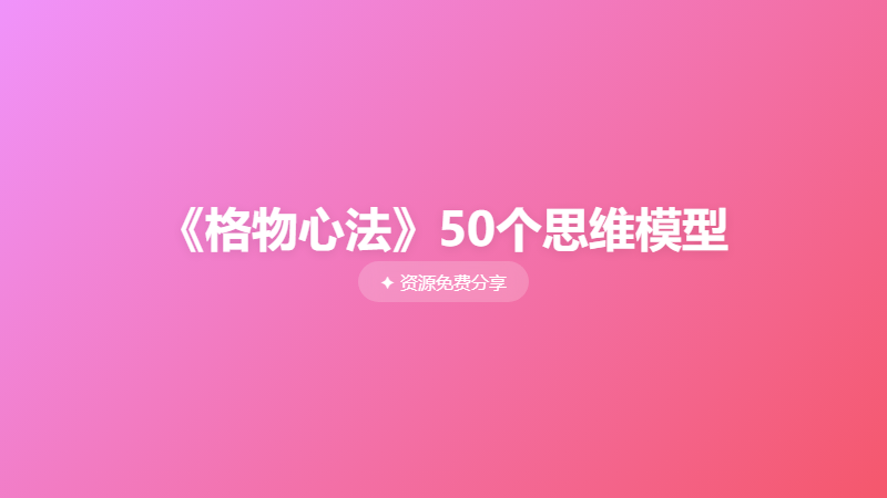 《格物心法》50个思维模型