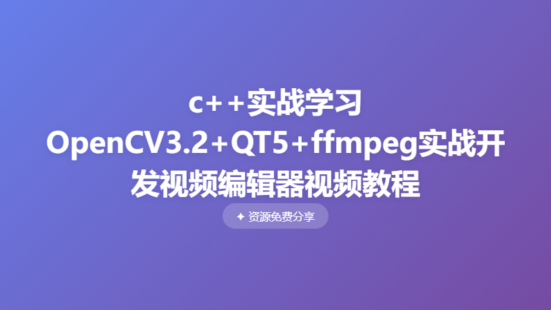 【夏曹俊8934】c++实战学习OpenCV3.2+QT5+ffmpeg实战开发视频编辑器视频教程_f ├── 1-1、课程介绍_ev.mp4 ├── 1-2、opencv源码在windows下载编译安装_ev.mp4 ├── 1-3、Ubuntu下编译opencv源码_ev.mp4 ├── 1-4、windows 上创建opencv示例项目编译并执行._ev_ev.mp4 ├── 1-5、ubuntu上创建opencv示例项目makefile编译并执行_ev_ev.mp4 ├── 1-6、QT开发环境下载、项目创建、代码结构介绍_ev_ev.mp4 ├── 1-7、课程代码下载说明_ev_ev.mp4 ├── 2-1、OpenCV Mat类型分析源码介绍、空间创建和释放_ev_ev.mp4 ├── 2-2、遍历和修改连续的OpenCV Mat图像空间_ev_ev.mp4 ├── 2-3、使用opencv接口实现运行记时函数用来分析执行效率_ev_ev.mp4 ├── 2-4、遍历不连续的OpenCV Mat空间_ev_ev.mp4 ├── 2-5、通过OpenCV ptr模板函数遍历Mat并测试其性能_ev_ev.mp4 ├── 2-6、通过OpenCV at函数遍历Mat并捕获异常_ev_ev.mp4 ├── 2-7、通过迭代器遍历Mat并总结遍历方法_ev_ev.mp4 ├── 2-8、QT自定义opengl的Widget绘制Mat_ev_ev.mp4 ├── 3-1、通过ROI感兴趣区域来裁剪图像_ev_ev.mp4 ├── 3-2、RGB、YUV、GRAY像素格式介绍opencv像素格式转换cvtColor接口讲解_ev_ev.mp4 ├── 3-3、手动实现转换灰度图并与opencv提供的函数做性能对比_ev_ev.mp4 ├── 3-4、通过OpenCV阈值函数threshold实现图像的二值化_ev_ev.mp4 ├── 3-5、通过对Mat遍历修改图像亮度和对比度与convertTo性能对比_ev_ev.mp4 ├── 3-6、图像尺寸调整算法介绍并手动实现近邻算法_ev_ev.mp4 ├── 3-7、调用opencv的resize使用近邻算法并与自定义算法比较_ev_ev.mp4 ├── 3-8、图像尺寸调整双线程插值算法讲解和性能测试_ev_ev.mp4 ├── 3-9、高斯金字塔和拉普拉斯金字塔调整图像尺寸详解_ev_ev.mp4 ├── 3-10、实现两幅图像混合blending_ev_ev.mp4 ├── 3-11、图像旋转和镜像_ev_ev.mp4 ├── 3-12、通过ROI实现图像并排合并_ev_ev.mp4 ├── 4-1、OpenCV VideoCapture打开摄像头接口讲解和源码分析_ev_ev.mp4 ├── 4-2、OpenCV VideoCapture打开视频流接口讲解和源码分析_ev_ev.mp4 ├── 4-3、VideoCapture release关闭和空间释放源码分析_ev_ev.mp4 ├── 4-4、OpenCV read读取一帧视频接口讲解和源码分析_ev_ev.mp4 ├── 4-5、使用OpenCV VideoCapture播放视频示例_ev_ev.mp4 ├── 4-6、获取视频和相机的属性并分析获取视频属性的源码_ev_ev.mp4 ├── 4-7、使用opencv实现视频播放位置跳转_ev_ev.mp4 ├── 4-8、通过VideoWrite的open创建视频文件并分析源码_ev_ev.mp4 ├── 4-9、通过VideoWrite的write写入视频文件并分析源码_ev_ev.mp4 ├── 4-10、以h264格式录制并预览摄像机视频代码演示_ev_ev.mp4 ├── 5-1、使用ffmpeg工具实现音频抽取、剪切和与视频合并_ev_ev.mp4 ├── 6-1、编辑器的需求分析和最终实现的功能介绍_ev_ev.mp4 ├── 6-2、项目类图介绍和类功能讲解_ev_ev.mp4 ├── 6-3、基于QT系统界面设计详解_ev_ev.mp4 ├── 6-4、实战项目环境搭建、项目创建和配置_ev_ev.mp4 ├── 6-5、完成视频编辑器播放界面并完成绘制视频widget重载_ev_ev.mp4 ├── 6-6、详解通过qss完成界面风格设置,设置按钮圆角和渐变颜色_ev_ev.mp4 ├── 6-7、通过qt界面打开外部视频并完成打开失败的界面提示_ev_ev.mp4 ├── 6-8、使用opencv读取并解码视频通过信号槽机制发出绘制信号_ev_ev.mp4 ├── 6-9、解码并使用播放视频,分析并解决QImage图像数据不连续问题_ev_ev.mp4 ├── 6-10、视频播放器进度条(QSlider)显示播放进度_ev_ev.mp4 ├── 6-11、通过QSlider滑动条拖动完成视频播放位置跳转_ev_ev.mp4 ├── 6-12、调整视频亮度对比度1完成XImagePro类_ev_ev.mp4 ├── 6-13、调整视频亮度对比度2完成XFilter类_ev_ev.mp4 ├── 6-14、调整视频亮度对比度3完成界视频结果显示_ev_ev.mp4 ├── 6-15、视频的导出1接口调用搭建和界面实现完成_ev_ev.mp4 ├── 6-16、视频导出2功能实现_ev_ev.mp4 ├── 6-17、完成播放暂停并使用qss设置播放暂停按钮样式效果_ev_ev.mp4 ├── 6-18、视频图像旋转并导出_ev_ev.mp4 ├── 6-19、视频上下左右镜像_ev_ev.mp4 ├── 6-20、视频图像旋转并导出_ev_ev.mp4 ├── 6-21、通过图像金字塔调整视频尺寸_ev_ev.mp4 ├── 6-22、通过ROI裁剪视频画面_ev_ev.mp4 ├── 6-23、转换为灰度图视频并导出_ev_ev.mp4 ├── 6-24、视频添加水印_ev_ev.mp4 ├── 6-25、视频融合1-完成了打开第二个视频源_ev_ev.mp4 ├── 6-26、视频融合2-完成了融合和导出._ev_ev.mp4 ├── 6-27、两路视频的横向合并为一个视频_ev_ev.mp4 ├── 6-28 音频类的抽取接口开发和测试_ev.mp4 ├── 6-29、完成视频中音频的的合并导出_ev_ev.mp4 ├── 6-30、完成了视频的开始结束位置剪辑音频未处理_ev_ev.mp4 ├── 6-31、完成了视频剪辑包含音频剪辑_ev_ev.mp4 └── 【夏曹俊】c 实战学习OpenCV3.2 QT5 ffmpeg实战开发视频编辑器视频教程.zip