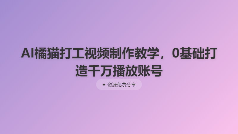 AI橘猫打工视频制作教学,0基础打造千万播放账号