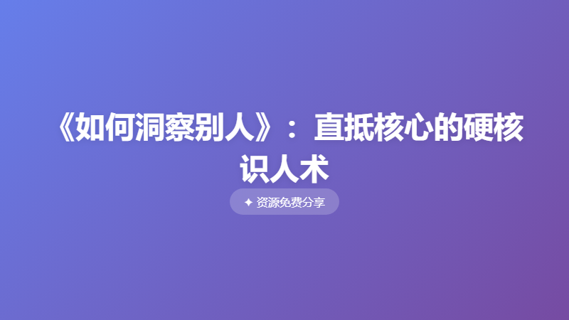 《如何洞察别人》:直抵核心的硬核识人术