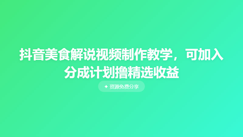 抖音美食解说视频制作教学,可加入分成计划撸精选收益