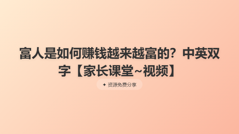 富人是如何赚钱越来越富的?中英双字【家长课堂~视频】