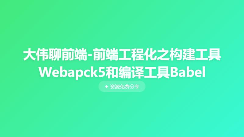 大伟聊前端-前端工程化之构建工具Webapck5和编译工具Babel