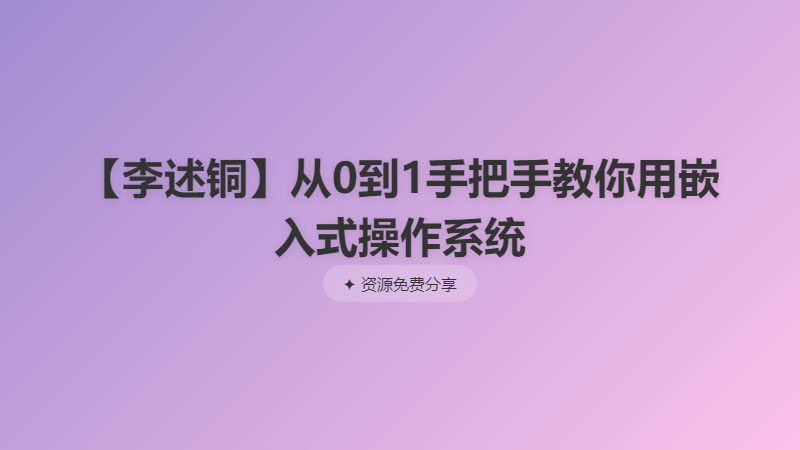 【李述铜】从0到1手把手教你用嵌入式操作系统 ├── 第1讲—C0.00 课程简介.mp4 ├── 第2讲—C0.01 下载安装开发软件.mp4 ├── 第3讲—C0.02 下载并调试第一个工程.mp4 ├── 第4讲—C1.00 tinyOS工作原理与功能概述.mp4 ├── 第5讲—C1.01 创建任务并运行起来.mp4 ├── 第6讲—C2.00 资源共享冲突问题概述.mp4 ├── 第7讲—C2.01 任务间资源共享问题示例.mp4 ├── 第8讲—C2.02 关中断解决任务间资源共享问题.mp4 ├── 第9讲—C2.03 调度锁解决任务间资源共享问题.mp4 ├── 第10讲—C2.04 二值信号量解决任务间资源共享问题.mp4 ├── 第11讲—C2.05 事件标志组解决任务间资源共享问题.mp4 ├── 第12讲—C2.06 邮箱标志组解决任务间资源共享问题.mp4 ├── 第13讲—C2.07 互斥信号量解决任务间资源共享问题.mp4 ├── 第14讲—C2.08 死锁问题及解决.mp4 ├── 第15讲—C2.09 任务间共享资源问题总结.mp4 ├── 第16讲—C3.00 任务与中断共享资源冲突示例.mp4 ├── 第17讲—C3.01 关中断解决任务中断共享资源冲突.mp4 ├── 第18讲—C3.02 关指定中断解决任务中断共享资源冲突.mp4 ├── 第19讲—C3.03 优化缩短关中断的时间.mp4 ├── 第20讲—C3.04 请求模式解决任务中断共享资源冲突.mp4 ├── 第21讲—C3.05 嵌套中断共享资源问题及解决.mp4 ├── 第22讲—C4.00 任务中断的同步与通信概述.mp4 ├── 第23讲—C4.01 用信号量实现任务间单向同步.mp4 ├── 第24讲—C4.02 用邮箱实现多事件的单向同步.mp4 ├── 第25讲—C4.03 用事件标志组实现多事件单向同步.mp4 ├── 第26讲—C4.04 用信号量实现简单双向同步.mp4 ├── 第27讲—C4.05 环状同步造成的死锁问题.mp4 ├── 第28讲—C4.06 利用全局数据实现数据通信.mp4 ├── 第29讲—C4.07 利用邮箱或消息队列实现数据通信.mp4 ├── 第30讲—C5.01 系统时钟节拍设置.mp4 ├── 第31讲—C5.02 任务延时的配置.mp4 ├── 第32讲—C5.03 一次性定时事件的处理.mp4 ├── 第33讲—C5.04 周期性定时事件的处理.mp4 ├── 第34讲—C5.05 定时器的资源互斥处理.mp4 ├── 第35讲—C5.06 定时器精度问题.mp4 ├── 第36讲—C6.00 存储管理方案.mp4 ├── 第37讲—C6.01 定长内存管理.mp4 ├── 第38讲—C6.02 变长存储块.mp4 ├── 第39讲—C6.03 存储管理方案小结.mp4 ├── 第40讲—C7.00 任务管理模式概述.mp4 ├── 第41讲—C7.01 使用非常驻任务管理事件.mp4 ├── 第42讲—C7.02 中断事件分离处理.mp4 ├── 第43讲—C7.05 任务优先级配置.mp4 ├── 第44讲—C7.03 合理配置空闲任务.mp4 ├── 第45讲—C7.04 多任务的协同.mp4 ├── 第46讲—C8.00 实例:总体功能说明.mp4 ├── 第47讲—C8.01 实例:按键驱动设计.mp4 ├── 第48讲—C8.02 实例:串口驱动设计.mp4 ├── 第49讲—C8.03 实例:外部端口驱动设计.mp4 ├── 第50讲—C8.04 实例:波形生成设计.mp4 ├── 第51讲—C8.05 实例:命令解释器设计1.mp4 ├── 第52讲—C8.06 实例:命令解释器设计2.mp4 ├── 第53讲—C8.07 实例:命令解释器设计 .mp4 ├── 第54讲—C8.08 实例:外部事件处理1 .mp4 ├── 第55讲—C8.09 实例:外部事件处理2.mp4 ├── 第56讲—C8.10 实例:监控任务设计1.mp4 ├── 第57讲—C8.11 实例:监控任务设计2.mp4 ├── 第58讲—C8.12 监控任务设计3.mp4 ├── 第59讲—C8.13 性能优化和功能裁剪.mp4 └── 第60讲—C8.14 设计回顾.mp4