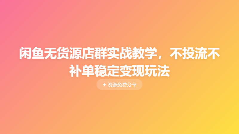 闲鱼无货源店群实战教学,不投流不补单稳定变现玩法