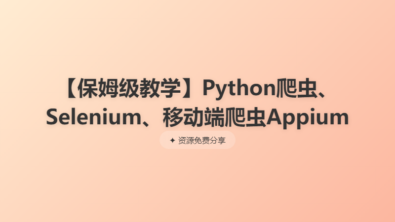 【保姆级教学】Python爬虫、Selenium、移动端爬虫Appium
