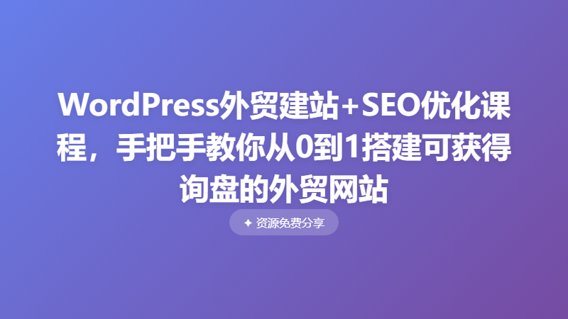 WordPress外贸建站+SEO优化课程,手把手教你从0到1搭建可获得询盘的外贸网站