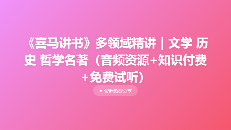 《喜马讲书》多领域精讲|文学 历史 哲学名著(音频资源+知识付费+免费试听)
