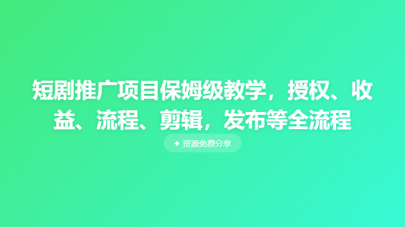 短剧推广项目保姆级教学,授权、收益、流程、剪辑,发布等全流程