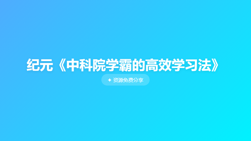 纪元《中科院学霸的高效学习法》