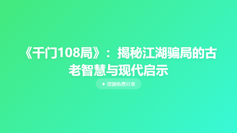 《千门108局》:揭秘江湖骗局的古老智慧与现代启示 └── 《千门108局》:揭秘江湖骗局的古老智慧与现代启示.pdf