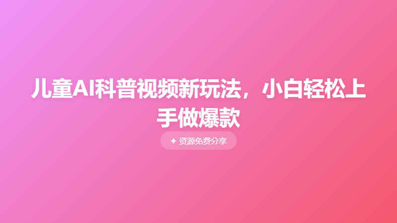 儿童AI科普视频新玩法,小白轻松上手做爆款