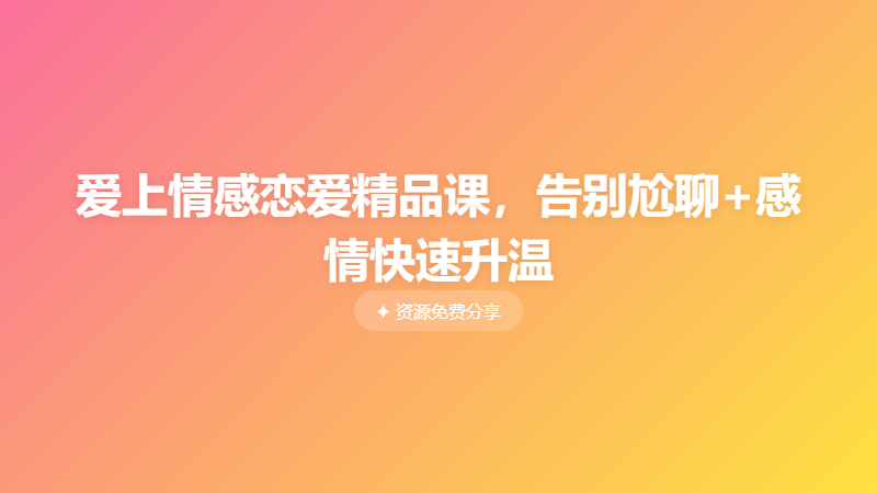 爱上情感恋爱精品课,告别尬聊+感情快速升温 ├── 2019年最新最前沿的认识女生渠道! 让你身边美女如云!.mp4 ├── 第一次聊天怎么找话题?和女孩聊天每一句如何找话题!(上).mp4 ├── 第一次聊天怎么找话题?和女孩聊天每一句如何找话题!(下).mp4 ├── 高情商聊天秘技,撩到女生对你连续表白三次(上).mp4 ├── 高情商聊天秘技,撩到女生对你连续表白三次(下).mp4 ├── 和女生聊天,开场破冰正确姿势.mp4 ├── 聊天如何和女生在同一个频道!逻辑回复怎么变成调情回复.mp4 ├── 聊天速成宝典!零基础也能学会的微信聊天全流程!.mp4 ├── 聊天万能回复模板!解决新手和女生聊天不会回!.mp4 ├── 聊天万能开场白,和女生聊天让你赢在起跑线上!.mp4 ├── 聊天为什么女生不回你?教你建立和女生聊天的良性循环!.mp4 ├── 聊天中那些错误会让女生失去兴趣?多数男生聊天时会犯的错误!(上).mp4 ├── 聊天中那些错误会让女生失去兴趣?多数男生聊天时会犯的错误!(下).mp4 └── 如何找到想要的表情,微信如何找表情?.mp4