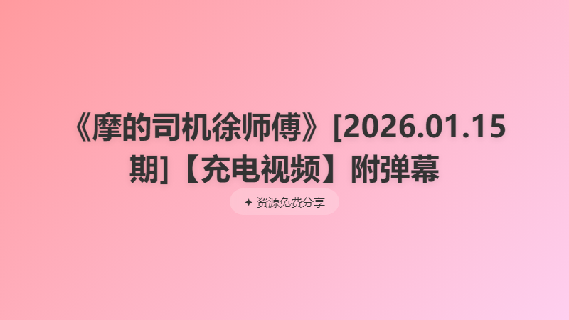 《摩的司机徐师傅》[2026.01.15期]【充电视频】附弹幕