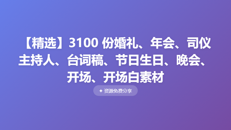 【精选】3100 份婚礼、年会、司仪主持人、台词稿、节日生日、晚会、开场、开场白素材