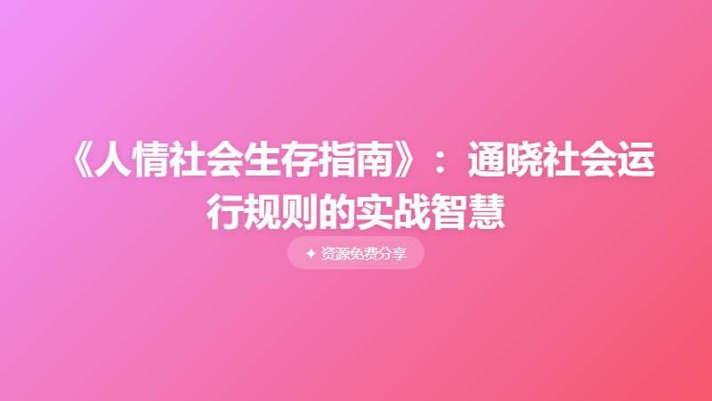 《人情社会生存指南》:通晓社会运行规则的实战智慧 └── 《人情社会生存指南》:通晓社会运行规则的实战智慧.pdf