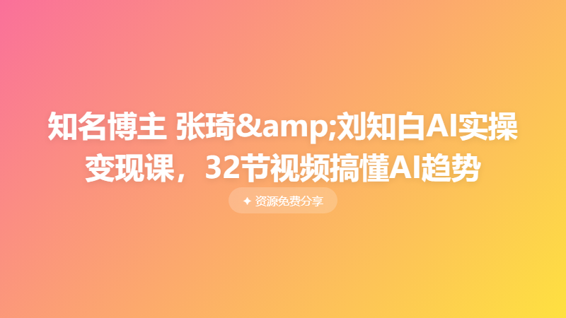 知名博主张琦&刘知白AI实操变现课,32节视频搞懂AI趋势 ├── 01_【趋势解读】A时代:流量营销的趋势变了.mp4 ├── 02_【趋势解读】DeepSeek爆火后,财富的风口在哪里.mp4 ├── 03_【趋势解读】为什么99%的人搞不懂DeepSeek.mp4 ├── 04_【趋势视频】AI时代给普通人的建议.mp4 ├── 05_【趋势解读】DS腾空出世,创业的基本面有什么变化.mp4 ├── 06_.mp4 ├── 07_7.【AI入门】DeepSeek和其他工具的对比.mp4 ├── 08_8.【AI入门】用好AI的核心3大能力.mp4 ├── 09_9.【AI入门】AI概念基础科普.mp4 ├── 10_10.【AI入门】理解AI原理,少走弯路.mp4 ├── 11_11.【提示词】BROKE原则直接套用,给你万能极简提示词框架.mp4 ├── 12_12.【实操视频】精准定位,AI带你找到行业热榜.mp4 ├── 13_13.【实操视频】借用AI,快速搞定短视频起号5件套.mp4 ├── 14_14.【实操视频】抓取关键词,秒拆同行,做原创爆款.mp4 ├── 15_15.【实操视频】量产数字人,打造爆单带货视频.mp4 ├── 16_16.【实操视频】AI自动检测限流违规词.mp4 ├── 17_17.【实操视频】面对客户压价,DeepSeek提供销售话术.mp4 ├── 18_18.【实操视频】AI批量生成小红书文案+高质量图片.mp4 ├── 19_19.【作词作曲】DeepSeek+天工AI, 1键生成属于自己的音乐作品.mp4 ├── 20_20. 【爆款文案】AI 批量生产多平台爆款内容,流量翻倍.mp4 ├── 21_21.【实操视频】AI浏览器 全面智能分析视频.mp4 ├── 22_22.【实操视频】文生视频-剪映“图文成片!.mp4 ├── 23_23.用AI设计工具,智能处理图片.mp4 ├── 24_24.【文生图】DeepSeek+即梦(上).mp4 ├── 25_25.【数字人生成】Deepseek+即梦(下).mp4 ├── 26_26.【文生视频】DeepSeek+可灵.mp4 ├── 27_27.【思维导图】DeepSeek+Xmind,逻辑秒清晰.mp4 ├── 28_28.【PPT制作】DeepSeek+Kimi,搞定汇报PPT.mp4 ├── 29_29.【会议记录】DeepSeek+通义,会议效率提升100%.mp4 ├── 30_30.【高效办公】DeepSeek+WPS,办公效率起飞.mp4 ├── 31_31.【智能绘图】DeepSeek+napkin,信息瞬间图表化.mp4 └── 32_32.【AI工具大集合】网页AI工具大集合+桌面版工具大集合.mp4
