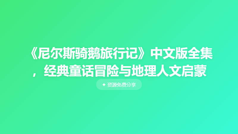 《尼尔斯骑鹅旅行记》中文版全集,经典童话冒险与地理人文启蒙 ├── 01-10集 │ ├── 第01集 旅程开始.mp4 │ ├── 第02集 海滩危机.mp4 │ ├── 第03集 地下冒险.mp4 │ ├── 第04集 深入虎穴.mp4 │ ├── 第05集 间谍.mp4 │ ├── 第06集 星彩石.mp4 │ ├── 第07集 龙卷风.mp4 │ ├── 第08集 首领之翼.mp4 │ ├── 第09集 挑战.mp4 │ └── 第10集 大块头高格.mp4 ├── 11-20集 │ ├── 第11集 小小的尼尔斯.mp4 │ ├── 第12集 好朋友.mp4 │ ├── 第13集 有姜饼的屋子.mp4 │ ├── 第14集 当英雄.mp4 │ ├── 第15集 螺旋俯冲.mp4 │ ├── 第16集 走丢的鹳.mp4 │ ├── 第17集 与狐合作.mp4 │ ├── 第18集 马丁的噩梦.mp4 │ ├── 第19集 双重人格.mp4 │ └── 第20集 恶作剧.mp4 ├── 21-30集 │ ├── 第21集 冰冻花园.mp4 │ ├── 第22集 回旋飞镖.mp4 │ ├── 第23集 真假黑精灵.mp4 │ ├── 第24集 以牙还牙.mp4 │ ├── 第25集 重担在身.mp4 │ ├── 第26集 独自飞行.mp4 │ ├── 第27集 貂熊.mp4 │ ├── 第28集 索拉之光.mp4 │ ├── 第29集 失忆的高格.mp4 │ └── 第30集 继续向前.mp4 ├── 31-40集 │ ├── 第31集 突然之间.mp4 │ ├── 第32集 三思而后行.mp4 │ ├── 第33集 吱吱.mp4 │ ├── 第34集 被冤枉的滋味.mp4 │ ├── 第35集 逐出雁群.mp4 │ ├── 第36集 埃卡要退休.mp4 │ ├── 第37集 寻宝冒险.mp4 │ ├── 第38集 大雁考试.mp4 │ ├── 第39集 言出必行.mp4 │ └── 第40集 问问鹅卵石.mp4 └── 41-52集 ├── 第41集 蝙蝠.mp4 ├── 第42集 奇怪的夜猫子.mp4 ├── 第43集 马丁的表白.mp4 ├── 第44集 恐怖森林.mp4 ├── 第45集 恐高症.mp4 ├── 第46集 派对动物.mp4 ├── 第47集 甜蜜的家.mp4 ├── 第48集 幸福小窝.mp4 ├── 第49集 言外之意.mp4 ├── 第50集 口味问题.mp4 ├── 第51集 迷途知返.mp4 └── 第52集 旅途的终点.mp4
