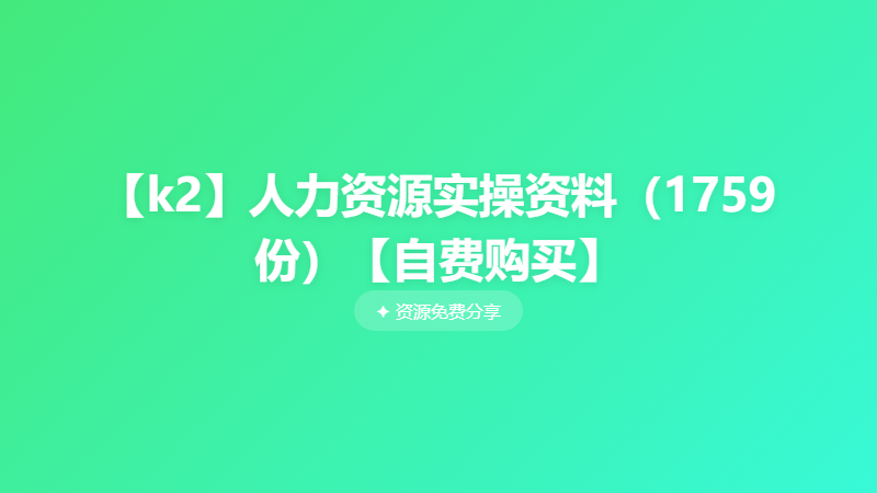 【k2】人力资源实操资料(1759份) ├── 0、人力资源规划(10份) │ ├── 人力资源规划(1).ppt │ ├── 人力资源规划(1).pptx │ ├── 人力资源规划.doc │ ├── 人力资源规划.docx │ ├── 人力资源规划.pdf │ ├── 人力资源规划.ppt │ ├── 人力资源规划.pptx │ ├── 人力资源规划.txt │ ├── 【HR规划】基于战略的人力资源规划.pdf │ └── 【HR规划】人力资源规划及数据分析.pptx ├── 1、招聘(117份) │ ├── (完整版)人员招聘方案文档集(14份) │ │ ├── (完整版)人员招聘方案.doc │ │ ├── 人员招聘方案(1).doc │ │ ├── 人员招聘方案(1).docx │ │ ├── 人员招聘方案(2).doc │ │ ├── 人员招聘方案(2).docx │ │ ├── 人员招聘方案(3).docx │ │ ├── 人员招聘方案(4).docx │ │ ├── 人员招聘方案.doc │ │ ├── 人员招聘方案.docx │ │ ├── 招聘方案(完整)(1).doc │ │ ├── 招聘方案(完整)(2).doc │ │ └── 招聘方案(完整).doc │ ├── 126家招聘网络平台介绍文档集(15份) │ │ ├── 126家招聘网络平台介绍.xlsx │ │ ├── 全国大型招聘网站一览表.doc │ │ ├── 网络招聘.pdf │ │ ├── 网络招聘.ppt │ │ ├── 网络招聘简介.docx │ │ ├── 招聘(1).docx │ │ ├── 招聘(1).ppt │ │ ├── 招聘(2).docx │ │ ├── 招聘.doc │ │ ├── 招聘.docx │ │ ├── 招聘.pdf │ │ ├── 招聘.ppt │ │ ├── 招聘人才.ppt │ │ ├── 招聘网站.doc │ │ └── 招聘网站大全.docx │ ├── 2023年招聘渠道汇总(开发新渠道)文档集(15份) │ │ ├── 2019最全招聘渠道对比分析.docx │ │ ├── 2023年招聘渠道汇总(开发新渠道).pptx │ │ ├── 各种招聘渠道分析.doc │ │ ├── HR目前招聘渠道的对比分析——招聘渠道 - 副本.doc │ │ ├── 年度招聘渠道汇总及分析.doc │ │ ├── 浅谈几种招聘渠道.docx │ │ ├── 企业招聘渠道.doc │ │ ├── 招聘渠道的选择与拓展.ppt │ │ ├── 招聘渠道的选择与拓展.pptx │ │ ├── 招聘渠道分析(1).ppt │ │ ├── 最全招聘渠道对比分析.doc │ │ ├── 专题五:招聘渠道.pptx │ │ ├── 《HR招聘之—招聘渠道建设及分析》...ppt │ │ ├── 《HR招聘之—招聘渠道建设及分析》.ppt │ │ └── 【招聘分析】渠道为王—招聘渠道的选择与拓展(全案分析与指导).ppt │ ├── 公司人事表格招聘面试全套模板文档集(6份) │ │ ├── 应聘人员面试表格.doc ... 省略 365 行 ... │ │ ├── 《关于确立劳动关系有关事项的通知》.docx │ │ ├── 《社会保险费征缴监督检查办法》.docx │ │ ├── 《社会保险费征缴暂行条例》.docx │ │ ├── 《失业保险条例》.doc │ │ ├── 《住房公积金管理条例 》.docx │ │ └── 《中华人民共和国社会保险法》.docx │ ├── 社保政策解读 │ │ ├── HR必看:2017年五险一金多了这些新规定.docx │ │ ├── 【劳动法律法规】工伤保险条例详解.pdf │ │ ├── 【劳动法律法规】工伤保险详解.pdf │ │ ├── 【劳动法律法规】工伤认定办法.pdf │ │ ├── 【劳动法律法规】企业工伤应对与处理规范.pdf │ │ ├── 【劳动法律法规】生育保险详解.pdf │ │ ├── 【劳动法律法规】失业保险详解.pdf │ │ ├── 【劳动法律法规】五险一金之失业保险详解.pdf │ │ ├── 【劳动法律法规】养老保险详解.pdf │ │ └── 【劳动法律法规】医疗保险详解.pdf │ ├── 劳动法实施细则全文.docx │ ├── 劳动合同法.pdf │ └── 《中华人民共和国公司法》.docx ├── 7、总结(36份) │ ├── 述职报告模板 │ │ ├── 办公室述职模板.docx │ │ ├── 办公室员工年度个人总结.docx │ │ ├── 财务部述职模板.docx │ │ ├── 工程部述职模板 .docx │ │ ├── HR部门年终述职汇报模板.docx │ │ ├── 开发部述职模板.docx │ │ ├── 年终个人述职及规划汇报.ppt │ │ ├── 年终人力资源部述职报告(总结+计划模板).ppt │ │ ├── 生产部述职模板.docx │ │ ├── 述职报告的写作要点.docx │ │ ├── 销售部述职模板.docx │ │ ├── 职场新人的述职报告.docx │ │ └── 中高层管理者述职报告模板.docx │ └── 总结新年度计划 │ ├── 2019年终工作总结汇报ppt模板(清新风格).pptx │ ├── 2019年终工作总结汇报ppt模板(银行、信贷或金融行业).pptx │ ├── 2019年终简约工作总结ppt模板(通用版本).pptx │ ├── 2019年终业务人员个人工作汇报ppt模板.pptx │ ├── 2019年终作汇报PPT模板(个人总结).ppt │ ├── 人力资源部工作总结.doc │ ├── 人力资源部门培训工作总结范文(经典).doc │ ├── 人力资源部年度工作总结及规划.doc │ ├── 人力资源部年度工作总结及工作计划.doc │ ├── 人力资源部年度工作总结及年度工作规划 .doc │ ├── 人力资源部年度年度工作及工作总结规划.doc │ ├── 人力资源部年终工作总结及计划(多图表PPT).ppt │ ├── 人力资源部述报告模板.pptx │ ├── 人力资源工作总结及计划.ppt │ ├── 人力资源年度工作总结范本.doc │ ├── 神总结:人力资源管理的各模块流程图.doc │ ├── 最清晰的人力资源工作总结(多图