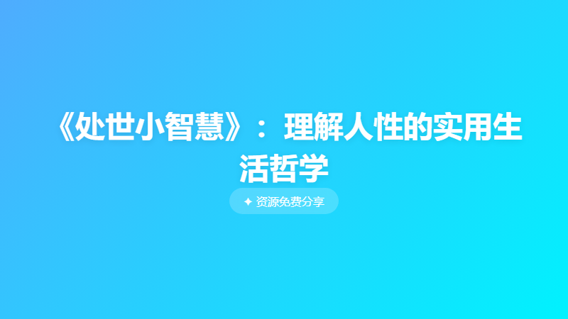 《处世小智慧》:理解人性的实用生活哲学