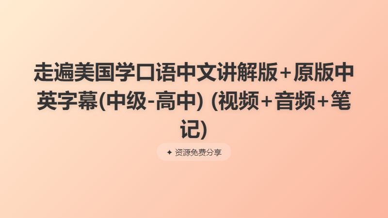 走遍美国学口语中文讲解版+原版中英字幕(中级-高中)(视频+音频+笔记) ├── 01【走遍美国学口语】高清中文讲解(43集) │ ├── 【课时01】ACE-走遍美国学口语1-第1集第1讲.flv │ ├── 【课时02】ACE-走遍美国学口语1-第1集第2讲.flv │ ├── 【课时03】ACE-走遍美国学口语1-第1集第3讲.flv │ ├── 【课时04】ACE-走遍美国学口语1-第1集第4讲.flv │ ├── 【课时05】ACE-走遍美国学口语1-第2集第1讲.flv │ ├── 【课时06】ACE-走遍美国学口语1-第2集第2讲.flv │ ├── 【课时07】ACE-走遍美国学口语1-第2集第3讲.flv │ ├── 【课时08】ACE-走遍美国学口语1-第3集第1讲].flv │ ├── 【课时09】ACE-走遍美国学口语1-第3集第2讲.flv │ ├── 【课时10】ACE-走遍美国学口语1-第3集第3讲.flv │ ├── 【课时11】ACE-走遍美国学口语1-第3集第4讲.flv │ ├── 【课时12】ACE-走遍美国学口语1-第3集第5讲.flv │ ├── 【课时13】ACE-走遍美国学口语1-第4集第1讲.flv │ ├── 【课时14】ACE-走遍美国学口语1-第4集第2讲.flv │ ├── 【课时15】ACE-走遍美国学口语1-第4集第3讲.flv │ ├── 【课时16】ACE-走遍美国学口语1-第5集第1讲.flv │ ├── 【课时17】ACE-走遍美国学口语1-第5集第2讲.flv │ ├── 【课时18】ACE-走遍美国学口语1-第5集第3讲.flv │ ├── 【课时19】ACE-走遍美国学口语1-第6集第1讲.flv │ ├── 【课时20】ACE-走遍美国学口语1-第6集第2讲.flv │ ├── 【课时21】ACE-走遍美国学口语1-第6集第3讲.flv │ ├── 【课时22】ACE-走遍美国学口语1-第6集第4讲.flv │ ├── 【课时23】ACE-走遍美国学口语1-第7集第1讲.flv │ ├── 【课时24】ACE-走遍美国学口语1-第7集第2讲.flv │ ├── 【课时25】ACE-走遍美国学口语1-第7集第3讲.flv │ ├── 【课时26】ACE-走遍美国学口语1-第8集第1讲.flv │ ├── 【课时27】ACE-走遍美国学口语1-第8集第2讲.flv │ ├── 【课时28】ACE-走遍美国学口语1-第8集第3讲.flv │ ├── 【课时29】第9集第1讲.flv │ ├── 【课时30】第9集第2讲.flv │ ├── 【课时31】第9集第3讲.flv │ ├── 【课时32】第10集第1讲.flv │ ├── 【课时33】第10集第2讲.flv │ ├── 【课时34】第10集第3讲.flv │ ├── 【课时35】第11集第1讲.flv │ ├── 【课时36】第11集第2讲.flv │ ├── 【课时37】第12集第1讲.flv │ ├── 【课时38】第12集第2讲.flv │ ├── 【课时39】第13集第1讲.flv │ ├── 【课时40】第13集第2讲.flv │ ├── 【课时41】第13集第3讲.flv │ ├── 【课时42】第14集第1讲.flv │ └── 【课时43】第14集第2讲wmv.flv ├── 02《走遍美国原版》 中英字幕-MP4(78集) │ ├── 01.mp4 │ ├── 02.mp4 │ ├── 03.mp4 │ ├── 04.mp4 │ ├── 05.mp4 │ ├── 06.mp4 │ ├── 07.mp4 │ ├── 08.mp4 │ ├── 09.mp4 │ ├── 10.mp4 │ ├── 11.mp4 │ ├── 12.mp4 │ ├── 13.mp4 │ ├── 14.mp4 │ ├── 15.mp4 │ ├── 16.mp4 │ ├── 17.mp4 │ ├── 18.mp4 │ ├── 19.mp4 │ ├── 20.mp4 │ ├── 21.mp4 │ ├── 22.mp4 │ ├── 23.mp4 │ ├── 24.mp4 │ ├── 25.mp4 │ ├── 26.mp4 │ ├── 27.mp4 │ ├── 28.mp4 │ ├── 29.mp4 │ ├── 30.mp4 │ ├── 31.mp4 │ ├── 32.mp4 │ ├── 33.mp4 │ ├── 34.mp4 │ ├── 35.mp4 │ ├── 36.mp4 │ ├── 37.mp4 │ ├── 38.mp4 │ ├── 39.mp4 │ ├── 40.mp4 │ ├── 41.mp4 │ ├── 42.mp4 │ ├── 43.mp4 │ ├── 44.mp4 │ ├── 45.mp4 │ ├── 46.mp4 │ ├── 47.mp4 │ ├── 48.mp4 │ ├── 49.mp4 │ ├── 50.mp4 │ ├── 51.mp4 │ ├── 52.mp4 │ ├── 53.mp4 │ ├── 54.mp4 │ ├── 55.mp4 │ ├── 56.mp4 │ ├── 57.mp4 │ ├── 58.mp4 │ ├── 59.mp4 │ ├── 60.mp4 │ ├── 61.mp4 │ ├── 62.mp4 │ ├── 63.mp4 │ ├── 64.mp4 │ ├── 65.mp4 │ ├── 66.mp4 │ ├── 67.mp4 │ ├── 68.mp4 │ ├── 69.mp4 │ ├── 70.mp4 │ ├── 71.mp4 │ ├── 72.mp4 │ ├── 73.mp4 │ ├── 74.mp4 │ ├── 75.mp4 │ ├── 76.mp4 │ ├── 77.mp4 │ └── 78.mp4 └── MP3+文本.zip