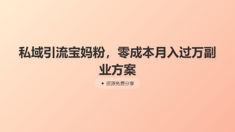 私域引流宝妈粉,零成本月入过万副业方案