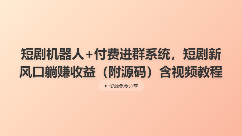 短剧机器人+付费进群系统,短剧新风口躺赚收益(附源码)含视频教程