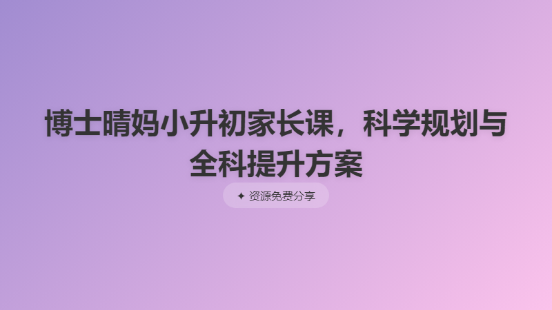 博士晴妈小升初家长课,科学规划与全科提升方案 ├── 资料数据 │ ├── 测试弱项口算题文件.pdf │ ├── 成长思维能量贴.pdf │ ├── 小学规划之数学篇.pdf │ ├── 小学规划之英语篇.pdf │ └── 小学规划之准备篇.pdf ├── 001.小升初总体规划课程总览.mp4 ├── 002.小学规划准备篇.mp4 ├── 003.数学家庭策略全规划.mp4 ├── 004.英语家庭规划全攻略.mp4 ├── 005.语文家庭规划全攻略.mp4 ├── 006.初中前,需要给孩子准备哪些知识与能力.mp4 ├── 007.准备篇1:父母心法技法.mp4 ├── 008.准备篇2:家居环境与饮食.mp4 ├── 009.准备篇3:学习周边的讨论.mp4 ├── 010.准备篇4:浅谈能力与习惯.mp4 ├── 011.附:爸妈给自己定计划.mp4 ├── 012.数学篇1 家长如何同步学习辅导.mp4 ├── 013.补充:陪孩子预习计算.mp4 ├── 014.补充:预习数学概念的几种方法.mp4 ├── 015.补充:数学的同步家庭作业与复习.mp4 ├── 016.补充:每章结束后的思维导图复习.mp4 ├── 017.数学篇2:帮孩子测出计算薄弱点.mp4 ├── 018.数学篇3:帮孩子制定计算训练计划(一).mp4 ├── 019.补充:帮孩子测出计算薄弱点并开始训练.mp4 ├── 020.数学篇4:帮孩子制定计算训练计划(二).mp4 ├── 021.补充:选择适合孩子的巧算练习.mp4 ├── 022.数学篇5:如何陪孩子练思维题(一).mp4 ├── 023.补充:适合普通孩子的思维同步学习.mp4 ├── 024.数学篇6:如何陪孩子练思维题(二).mp4 ├── 025.补充:适合拔高的思维练习.mp4 ├── 026.数学篇7:关于数学超前学的真相.mp4 ├── 027.英语篇1:为孩子选择一条英语学习路线.mp4 ├── 028.英语篇2:课内如何同步学.mp4 ├── 029.英语篇3:语法单词与音标.mp4 ├── 030.补充:语法自学演示.mp4 ├── 031.补充:单词自学演示.mp4 ├── 032.英语篇4:原版输入如何做.mp4 ├── 033.英语篇5:原版路线如何走.mp4 ├── 034.英语篇6:剑桥五级路线如何走.mp4 ├── 035.原版教材和自激方法.mp4 ├── 036.英语篇7:国内应试路线如何走.mp4 ├── 037.语文篇1:语文的家庭同步学习流程.mp4 ├── 038.演示:语文同步阅读.mp4 ├── 039.语文篇2:分级阅读路线.mp4 ├── 040.语文篇3:文言文积累路线(起步).mp4 ├── 041.语文篇4:文言文积累路线(进阶).mp4 ├── 042.语文篇5:古诗词与文学史积累路线.mp4 ├── 043.语文篇6:阅读理解如何破.mp4 ├── 044.语文篇7:写作提升路线.mp4 ├── 045.重视小升初,帮孩子自信开启新征程!.mp4 ├── 046.小初衔接1:4-5年级开始的小初衔接规划.mp4 ├── 047.小初衔接2:6年级初开始的小初衔接规划.mp4 ├── 048.小初衔接3:6升7暑假开始的小初衔接规划.mp4 ├── 049.小初衔接5:六升七的数学预习.mp4 ├── 050.小初衔接6:英语的准备.mp4 ├── 051.小初衔接7:初中语文和12本名著的准备.mp4 ├── 052.小初衔接8:初中古诗词如何准备.mp4 ├── 053.小初衔接9:论语如何准备.mp4 ├── 054.小初衔接10:经典路线如何做.mp4 ├── 055.小初衔接11:世说新语如何做.mp4 ├── 056.小初衔接12:文学史+唐诗宋词300首.mp4 ├── 057.小初衔接13:古文观止的准备.mp4 ├── 058.小初衔接14:地理的准备.mp4 ├── 059.小初衔接15:生物的准备.mp4 ├── 060.小初衔接16:历史的准备.mp4 ├── 061.小初衔接17:物理和化学的准备.mp4 ├── 062.方法篇1:整理错题的工具.mp4 └── 063.小到初暑期计划.mp4